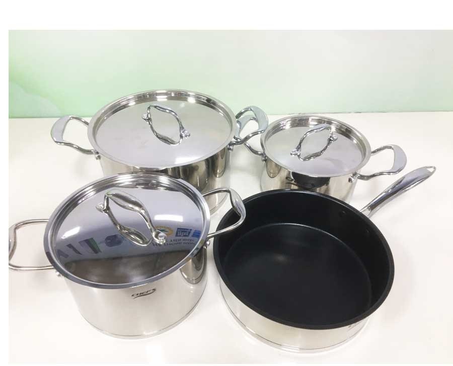 Bộ nồi từ 4 chiếc cao cấp Chef’s làm bằng chất liệu thép không gỉ, đáy bộ nồi 3 đáy siêu bền khi sử dụng, bộ nồi tiếp xúc nhiệt nhanh, tản nhiệt đều khi nấu Tính năng nổi bật: