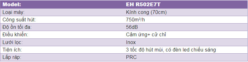 1. Thông số cơ bản máy hút mùi CHEFS EH-R502E7T