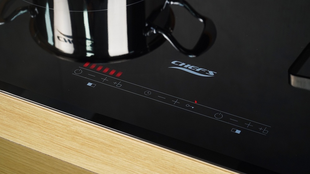 - Bếp từ CHEFS EH-DIH333 ứng dụng hệ thống điều khiển công suất với công nghệ điều khiển hoàn toàn bằng cảm ứng. Điều này cho phép hoạt động ổn định và chính xác trong điều kiện bình thường. Ngoài ra, bảng điều khiển E.G.O trong bếp cũng sử dụng sản phẩm mới đạt chất lượng tuyệt hảo.