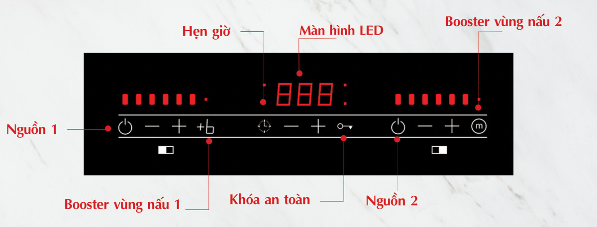 - Sau khi sử dụng bếp, bề mặt bếp vẫn còn nóng. Sẽ rất nguy hiểm nếu chẳng may bạn chạm vào. Tính năng cảnh báo nhiệt dư sẽ sáng lên để bạn biết mặt bếp nào đang nóng. Việc của bạn là không chạm vào bếp sáng.